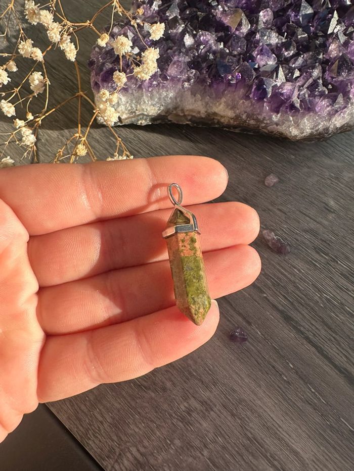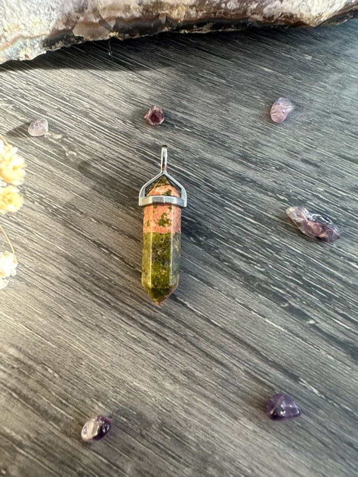 Pendentif pendule en Unakite véritable du Mexique – Pierre naturelle - photo numéro 1