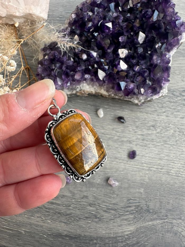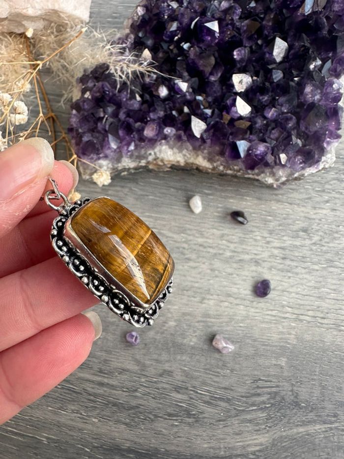 Pendentif en œil de tigre véritable d’Australie – Pierre naturelle