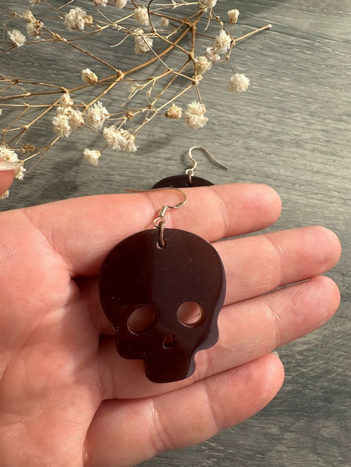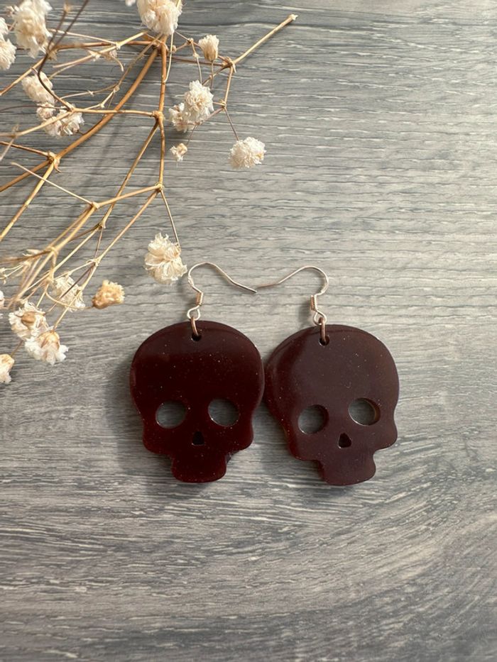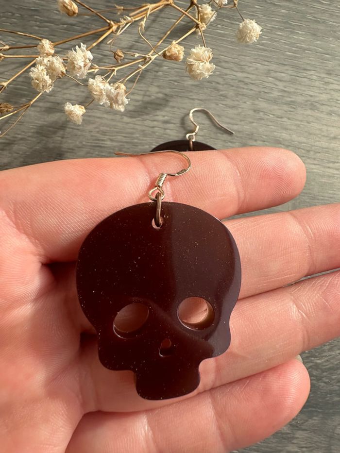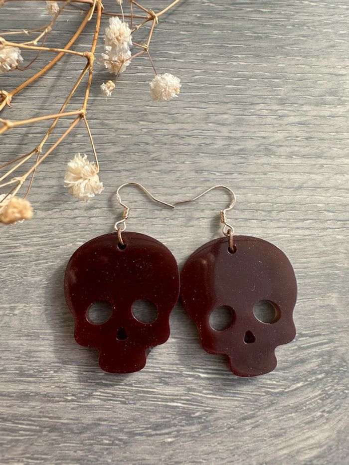 Boucles d'oreilles en résine et argent 925. Création faite à la main, pièce unique. Possibilité d'être entièrement personnalisé (couleur, paillettes, couleur de l'accroche..). La couleur ou la matière peut très légèrement varier, ce sont des pièces uniques. Halloween Creepy Spooky automne gothique goth gotic gothic black dark earings bijou bijoux alternatif rave teuf festival noir punk oi drakness argent argent925 concert rock rockandroll metal hardcore tekno techno tecno tek