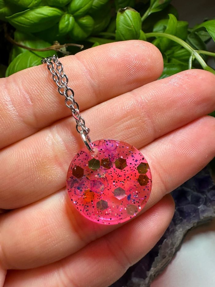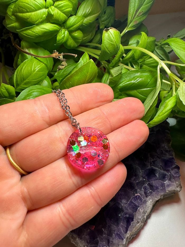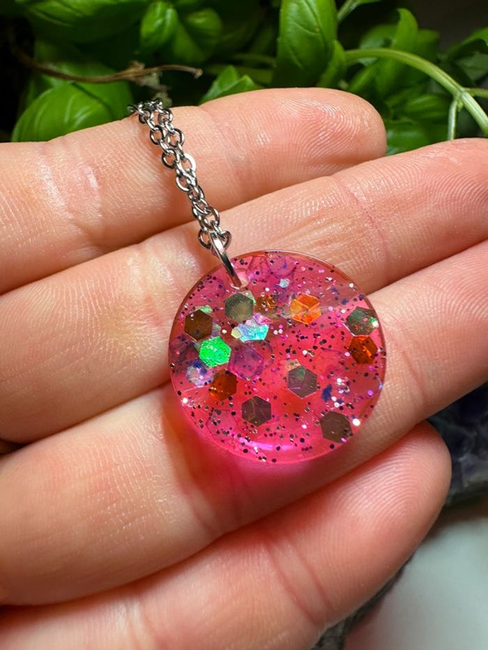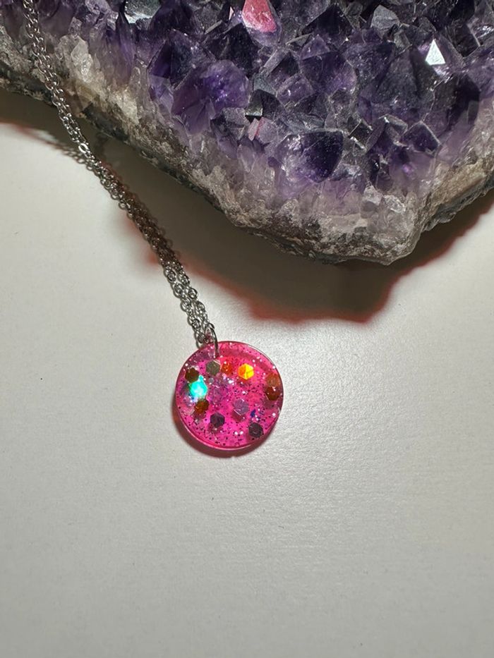 Pendentif rond en résine rose - photo numéro 4