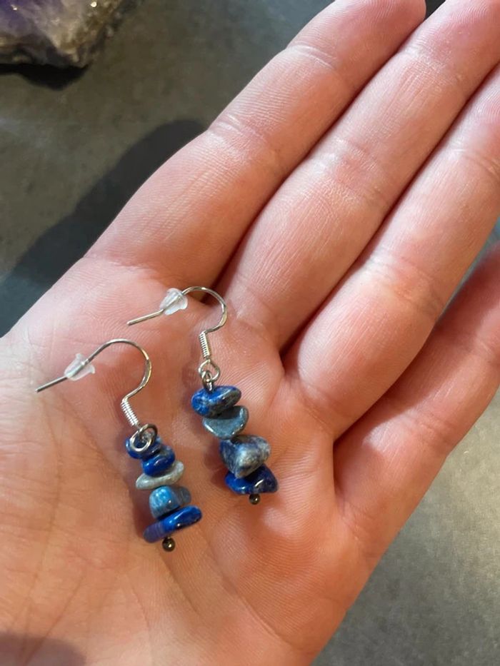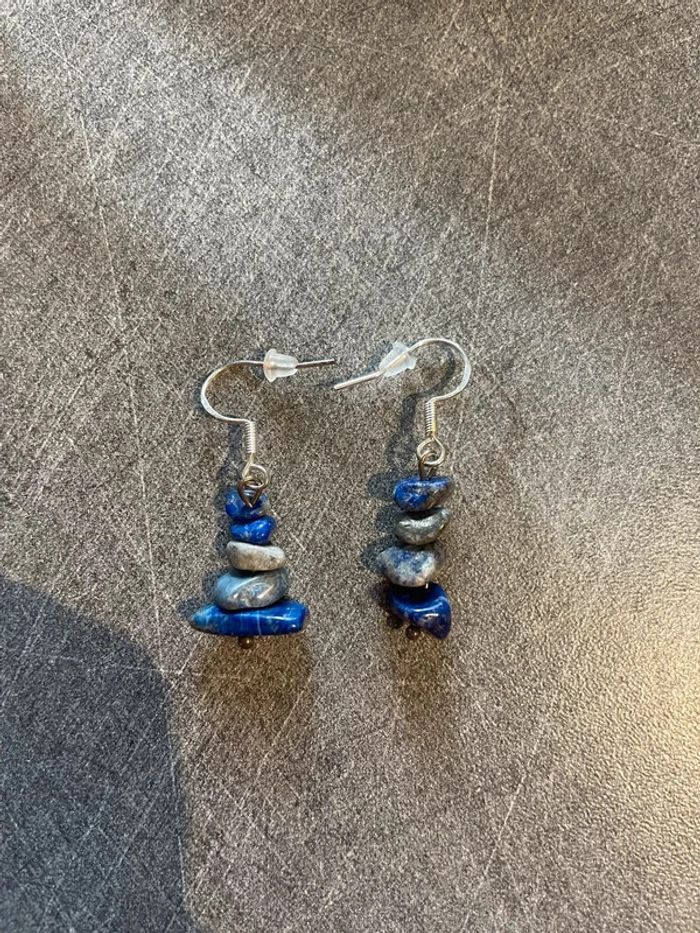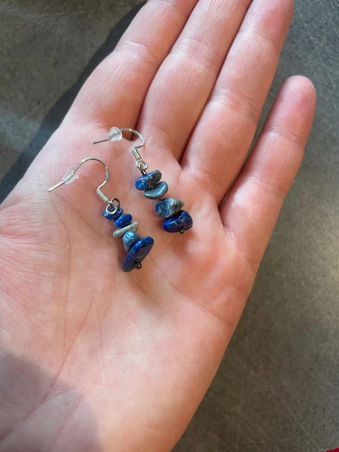 Boucle d'oreille en Lapis Lazuli véritable du Pakistan – Pierre naturelle - photo numéro 1