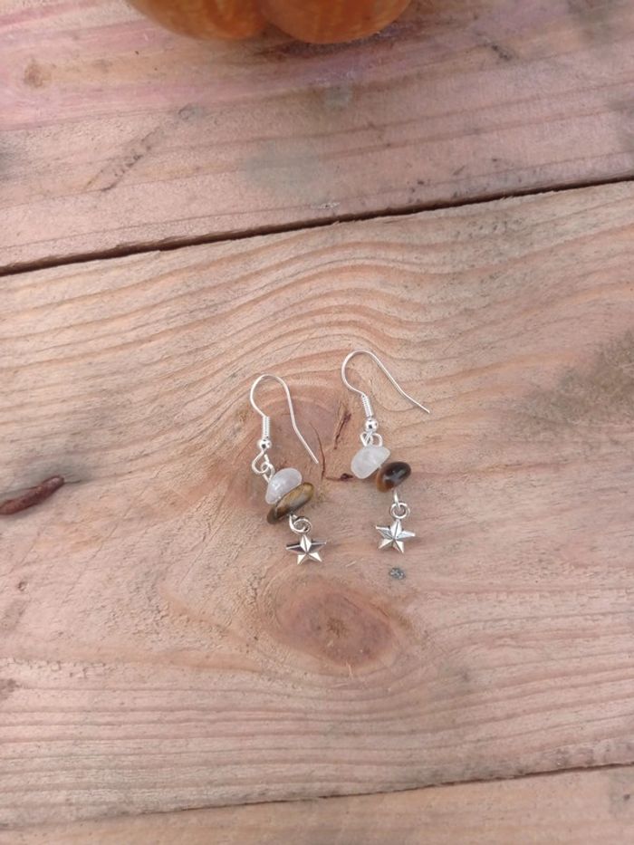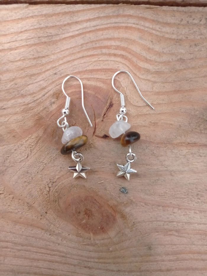 Avec de belles pierres naturelles de quartz rose et d'oeil de tigre. En acier inoxydable couleur argent. Protection et amour