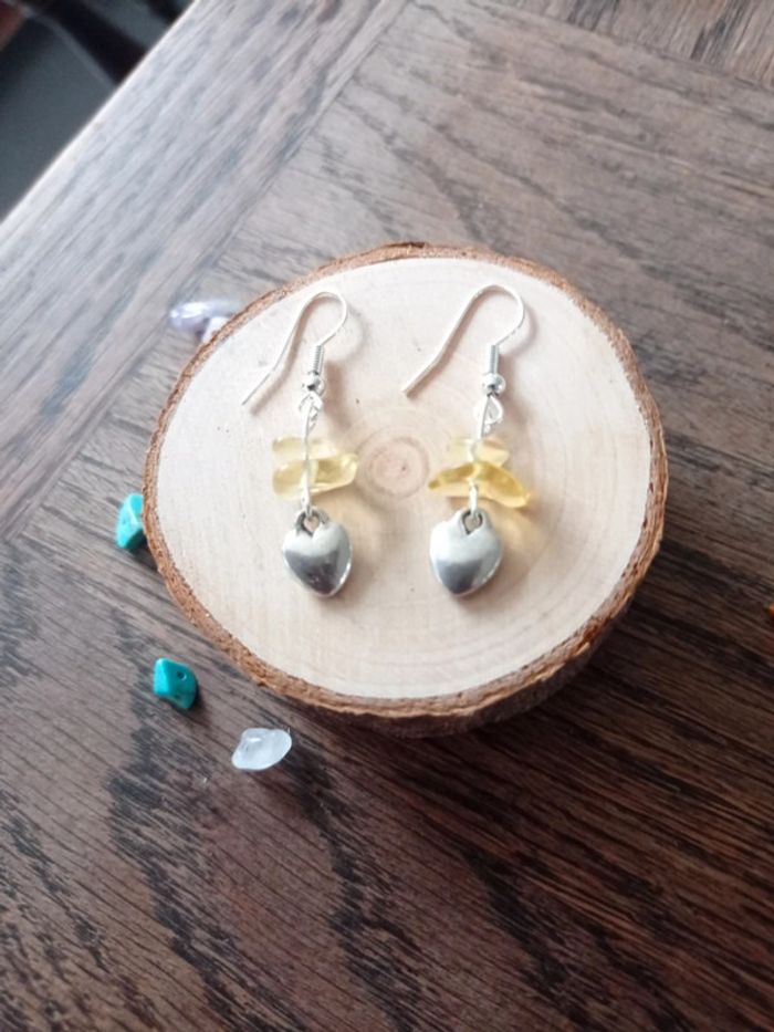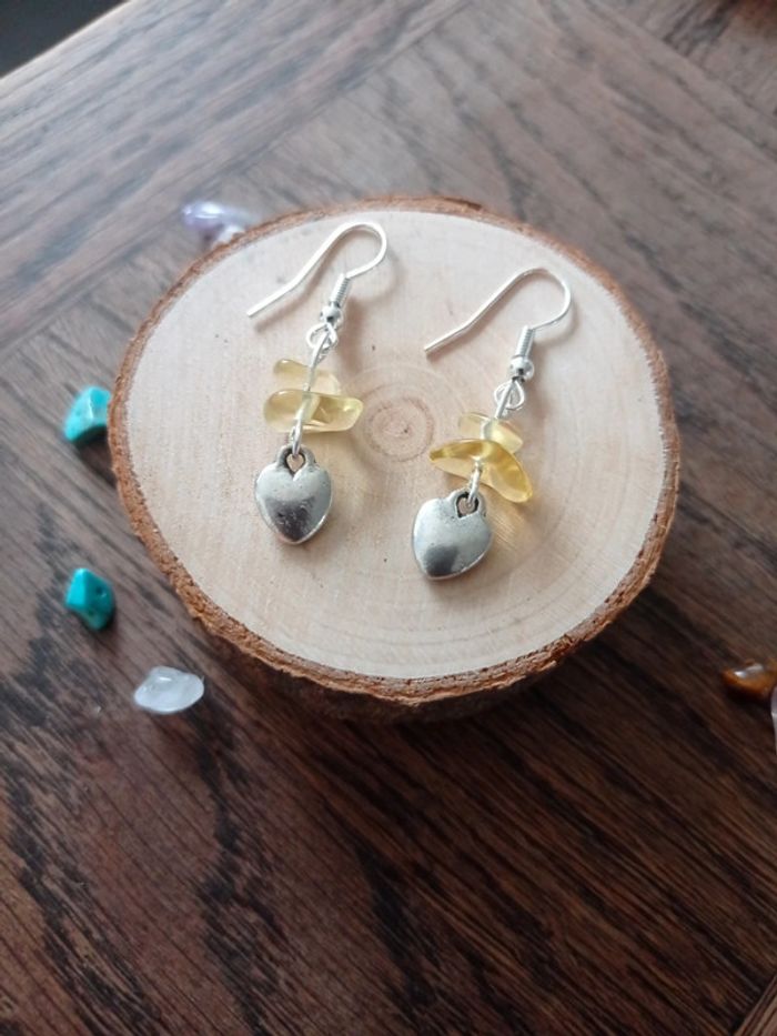 Tout en finesse et discrète... Petits coeurs en acier inoxydable couleur argent et de belles pierres naturelles de citrine.