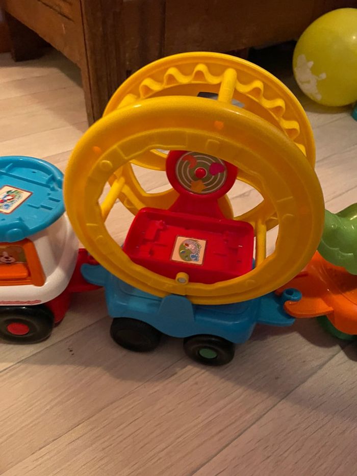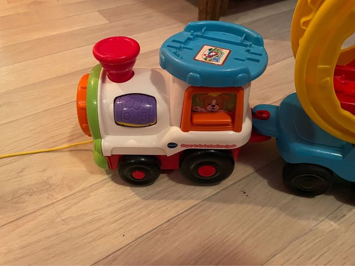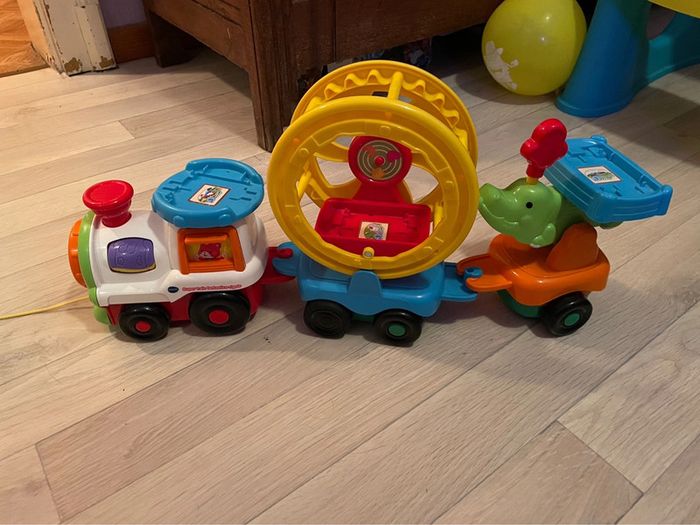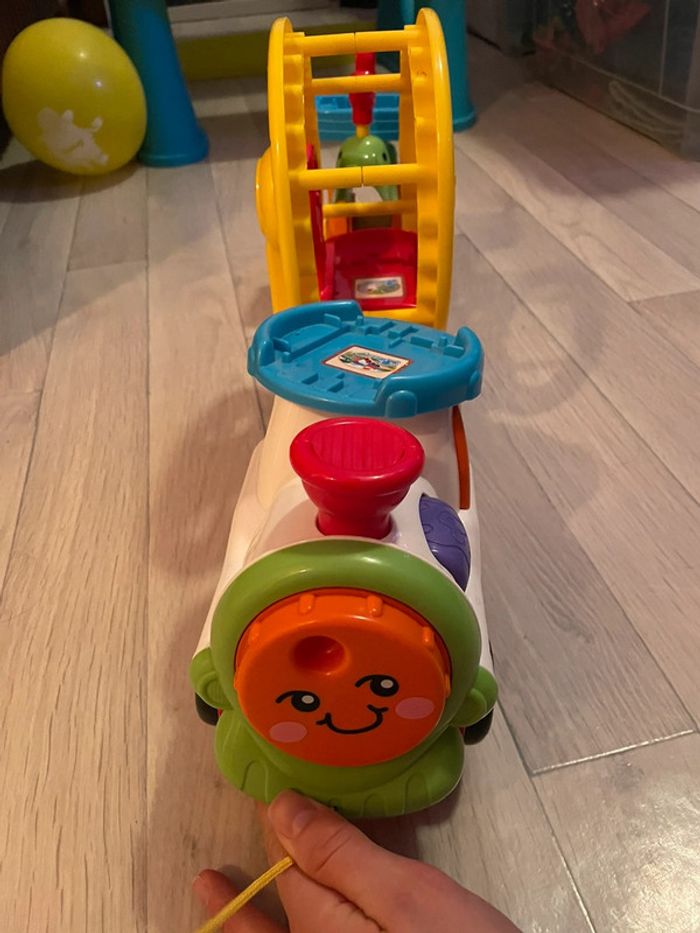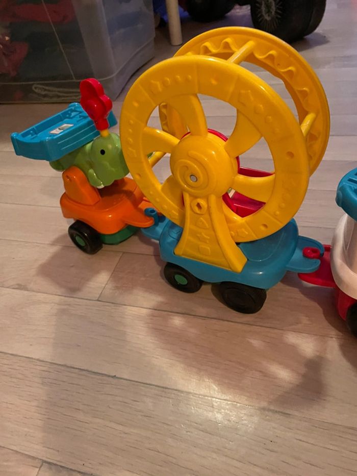 Très bon état. Train à tirer La roue tourne quand le train avance et peut tourner manuellement à l’arrêt #tchoutchoubolides #trainvtech #roue #crocodile