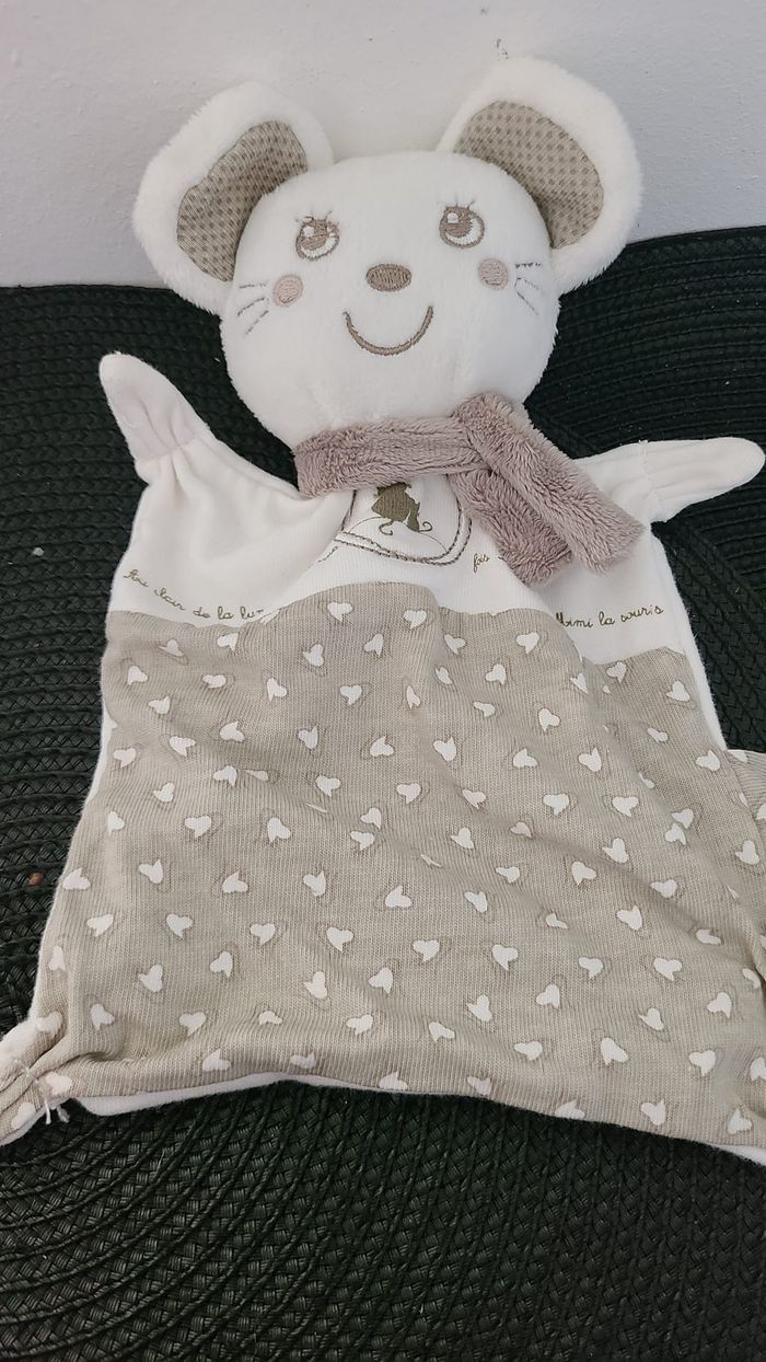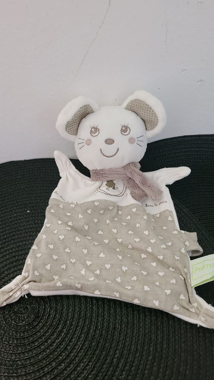 Doudou plat souris blanc beige Au clair de la lune PREMAMAN - photo numéro 1