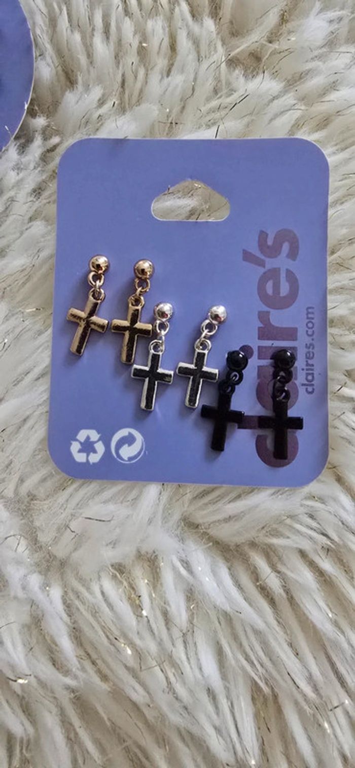 🌼 dressing avec remise 🌼 lot de boucle d'oreille jamais porter sauf l'anneau. #gwen62880accessoires #noire #croixchretienne #croix #anneaux #pendante