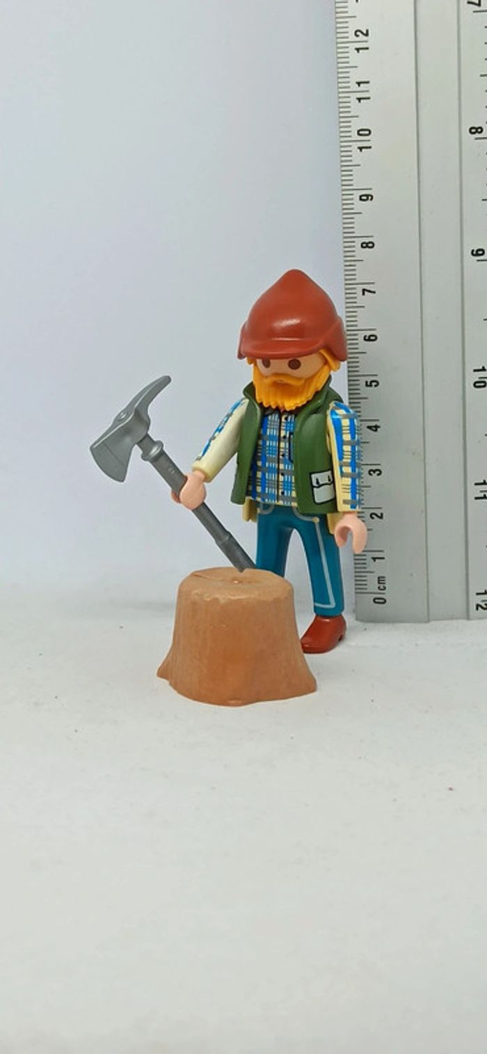 Homme bûcheron avec pioche et souche d'arbre playmobil - photo numéro 4