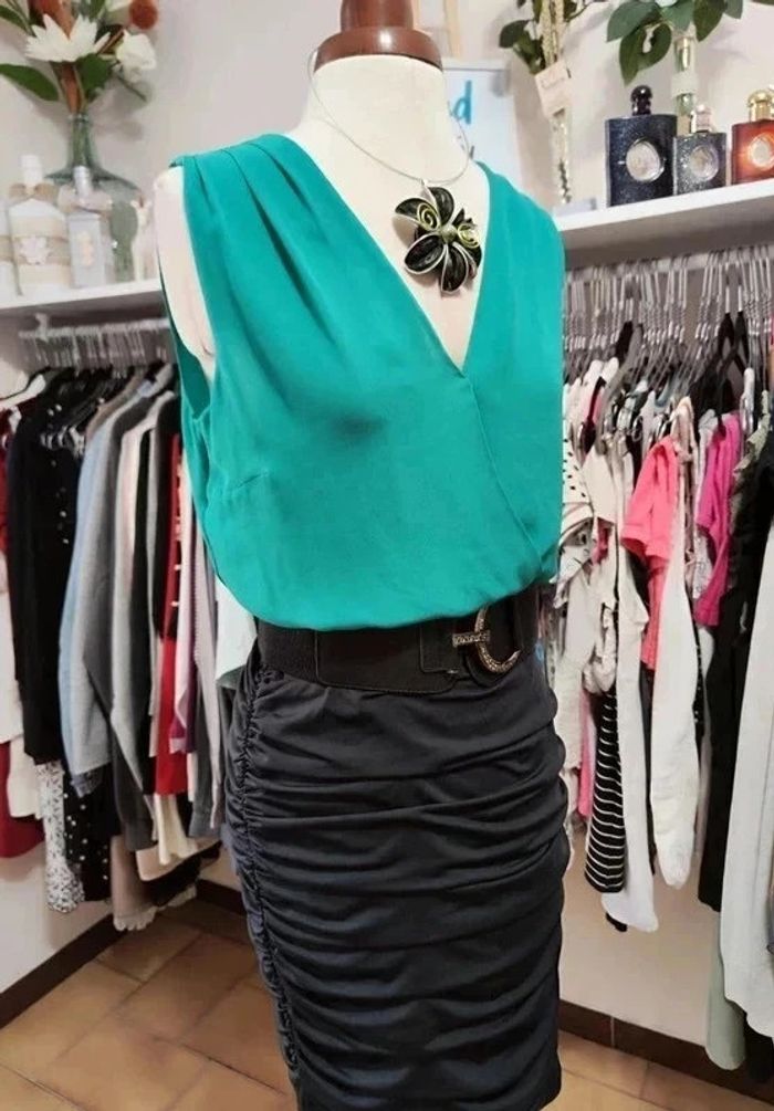 📍Robe chic femme, pour occasion, taille 36, en parfait état. 📍Le haut fait chemisier et le bas plissé donne un très bel effet assuré ! 📍Le bas de la robe est extensible. 📍La robe s'ouvre et se ferme sur le côté pour faciliter l'enfilage. 🏷 Taille étiquette : 36 📐 Aisselles : 45 cm 📐 Longueur : 82 cm 🧶 Composition : - 94% polyester - 6% élasthanne 🌈 Couleur : Noir/ Bleu canard 🪡 Etat : Très bon 👉Pour trouver d'autres robes c'est par ici : 🔎#elisabethdesignRobe 📫⏳ Envoi rapide et soigné le jour même de l'achat dans la mesure du possible! 🤝 Frais de port ajusté au plus bas.