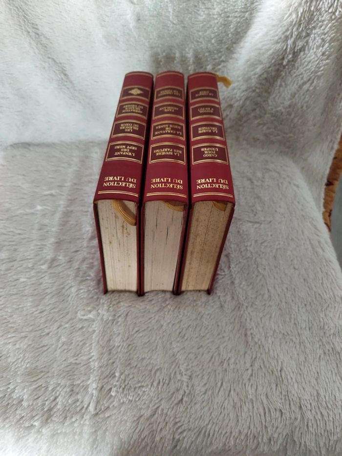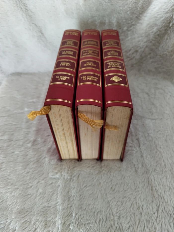 1️⃣ Cargo pour l'enfer + La harpe celtique + Espion y est-tu + Le cirque d'été 2️⃣ La rivière des parfums + La caravane de soeur Agnès + Faux-semblants + Les chemins de pierre 3️⃣ L'enfant des septs mers + Les silences du coeur + opération silence du désert Surtout l'extérieur des pages est jauni par le temps, l'intérieur des livres est intact sauf quelques pages avec des tâches jaunâtres Un coin de la couverture du livre 2️⃣ un peu abîmée devant Possibilité d'acheter au détail : 8€ par livre Prix du lot de 3 livres : 16€ Dans mon dressing 3 autres lots "meilleurs livres condensés" avec des couvertures d'autres couleurs 📚 N'hésitez pas à me contacter pour un lot combiné de la collection
