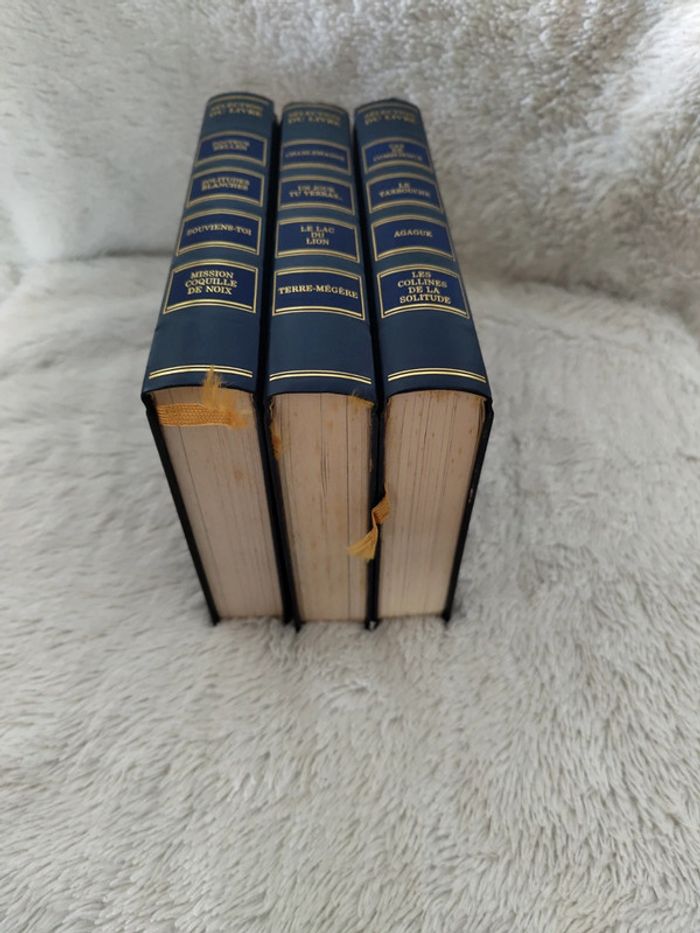 1️⃣ Docteur Hellen + Solitudes blanches + Souviens toi + mission coquille de noix 2️⃣ Charlemagne + Un jour tu verras... + Le lac du lion + Terre-mégère 3️⃣ Cas de Conscience + Le tarbouche + Agaguk + Les collines de la solitude Seul l'extérieur des pages est jauni par le temps, l'intérieur des livres est intact Possibilité d'acheter au détail : 8€ par livre Prix du lot de 3 livres : 16€ Dans mon dressing 3 autres lots "meilleurs livres condensés" avec des couvertures d'autres couleurs 📚 N'hésitez pas à me contacter pour un lot combiné de la collection