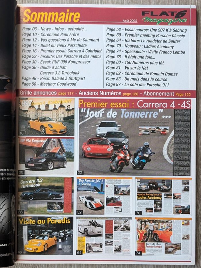 #_Porsche_#_Flat6_ numéro 174 (aout 2005) 997 Carrera 4 cabriolet, des porsche et des motos, préparation RUF 996 Kompressor, guide d'achat 911 Carrera 3.2 Turbolook, essai 907 K... 124 pages D'autres numéros disponibles dans mon dressing
