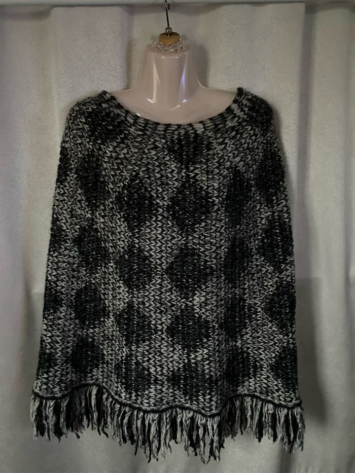 Cape poncho chiné blanc et noir M/L 🇮🇹 Rinascimento - photo numéro 1