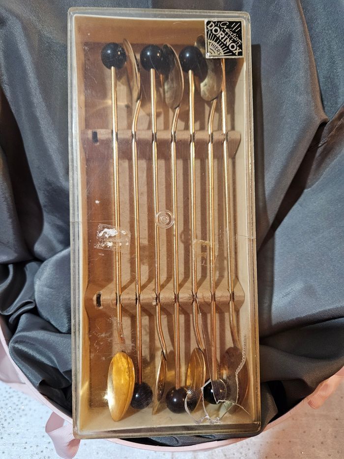 Le coffret est abîmé dû au stockage et à une inondation mais les cuillères n'ont jamais été utilisé
