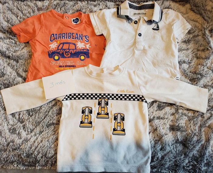 3 t-shirt en excellent état. Taille 3mois. Non fumeur 🚭 #alexaronbb3mois #orchestra #motsdenfants #acaa