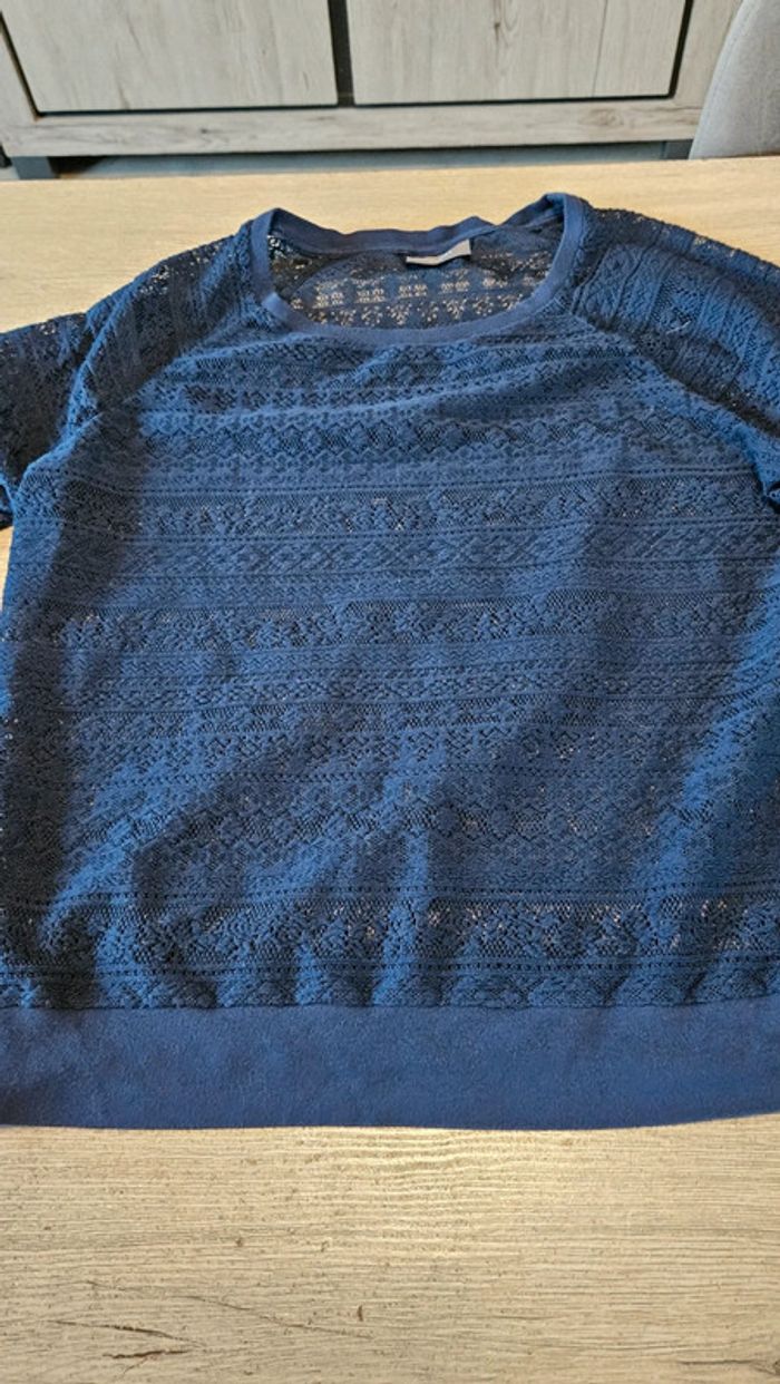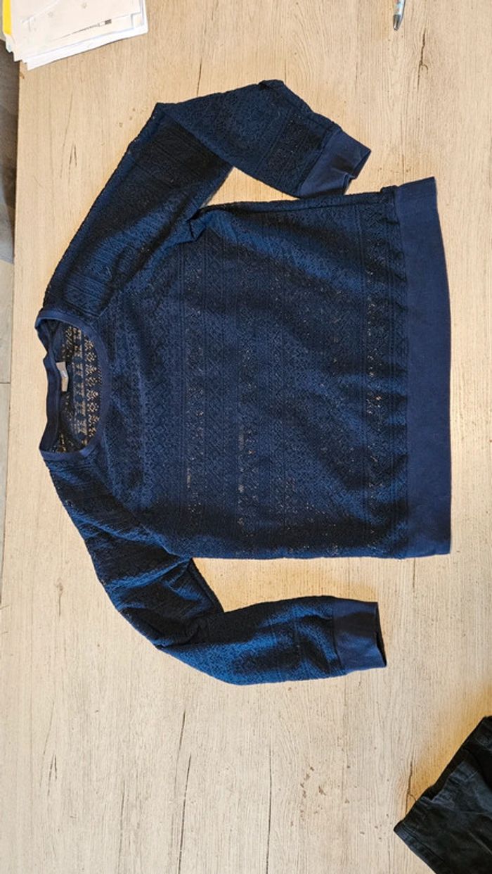 Joli pull en broderie avec bord aux manches et en bas. Transparent partout. Mis une seule fois donc nickel. L étiquette intérieure a été enlevée mais c est un 40/42, mais peut convenir aussi pour un 44. Il est légèrement élastique. 56 cm d aisselle à aisselle #deborahtock_femmeL #deborahtock_femmeXL