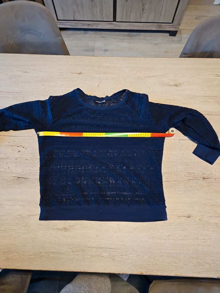 Pull léger à manches longues, en broderie transparente, bleu foncé, Yessica, 40/42, nickel