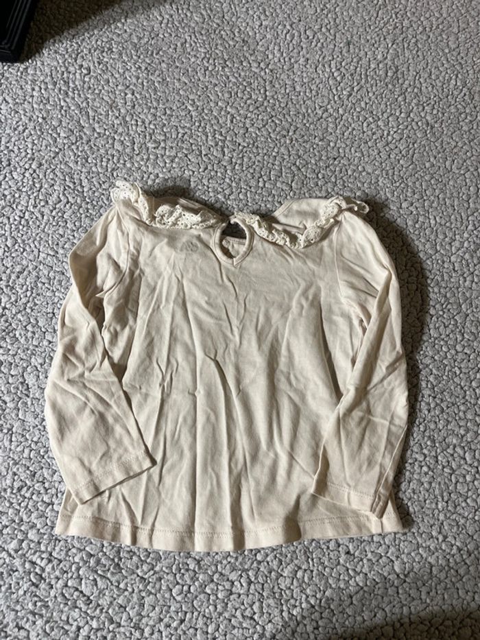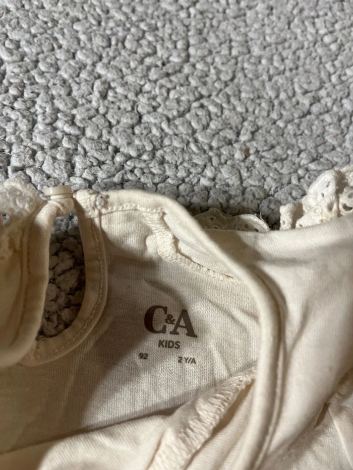 TEE shirt manches longues Crème C&A Taille 92cm Col Claudine dentelle