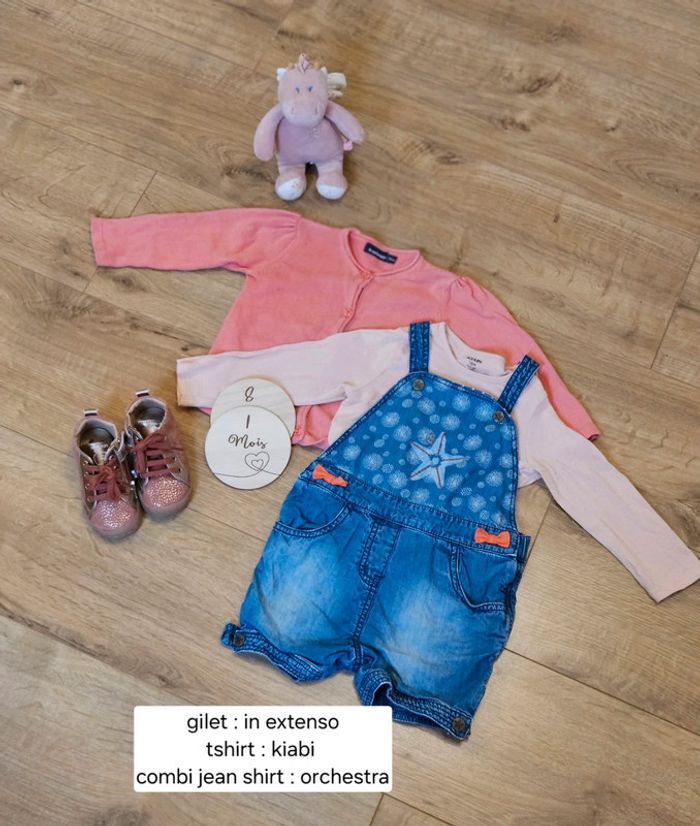 Jolie ensemble en 18 mois - gilet : in extenso - tshirt : kiabi - combi jean short : orchestra #sephira49_18mois