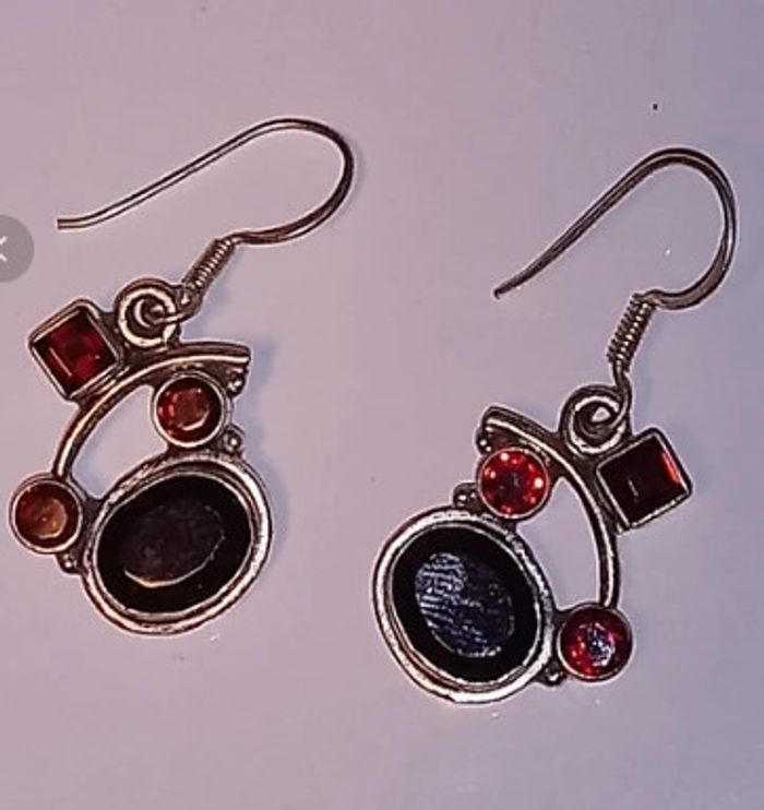 Boucles d'oreilles pendantes argents et rouge rubi