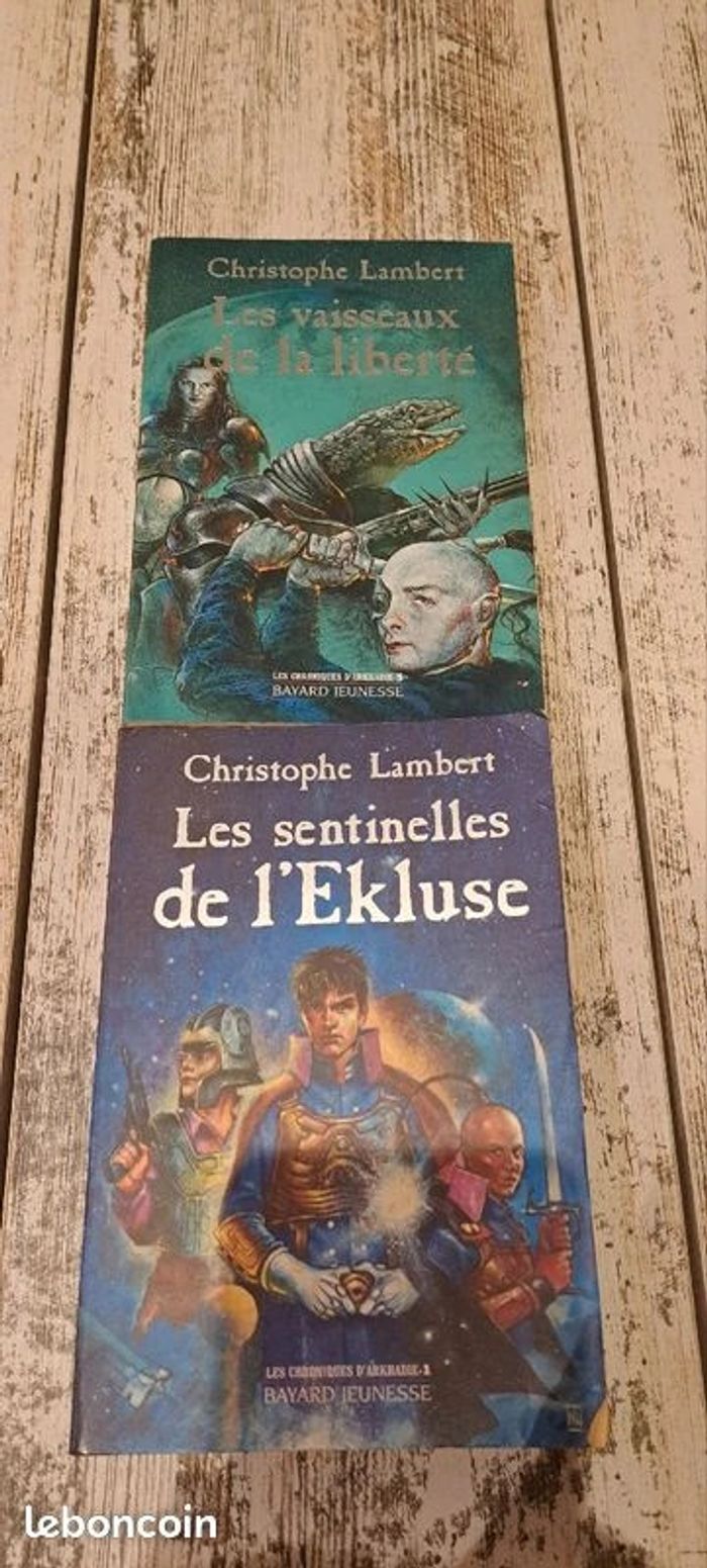 Les Chroniques d'Arkhadie, tome 1 : Les Sentinelles de l'Ekluse editeur ‏ : ‎ Bayard Jeunesse Christophe Lambert (Auteur) Langue ‏ : ‎ Français Broché ‏ : ‎ 259 pages ISBN-10 ‏ : ‎ 2747000958 ISBN-13 ‏ : ‎ 978-2747000956 Poids de l'article ‏ : ‎ 400 g Les Chroniques d'Arkhadie, tome 3 : Les Vaisseaux de la liberté Christophe Lambert (Auteur) ASIN ‏ : ‎ 2747003825 Éditeur ‏ : ‎ Bayard Jeunesse (25 mars 2003) Langue ‏ : ‎ Français Broché ‏ : ‎ 254 pages ISBN-10 ‏ : ‎ 9782747003827 ISBN-13 ‏ : ‎ 978-2951888814 Poids de l'article ‏ : ‎ 300 g 3€ le tome ou 6€ les 2