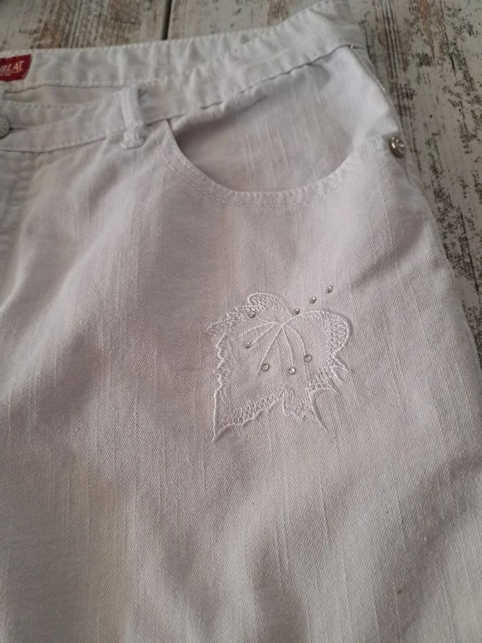 Pantacourt jean  brodé feuille avec strass - photo numéro 1