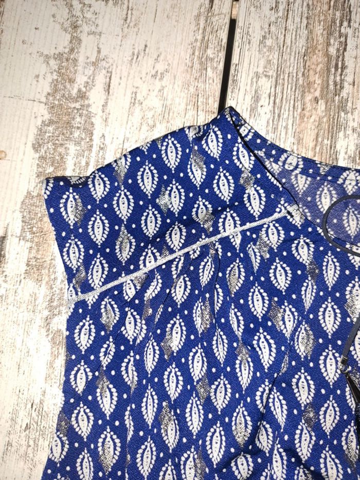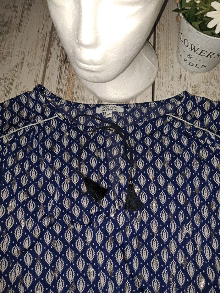 Très joli blouse porté 1 fois Le bas esttélastique pour pouvoir s'adapter à votre taille les motifs sont ethniques et argentiés un petit cordon de serra au niveau du coup vous permettra de donner un joli décolleté
