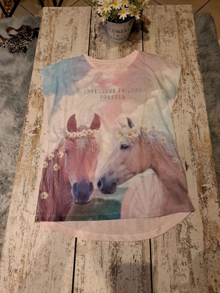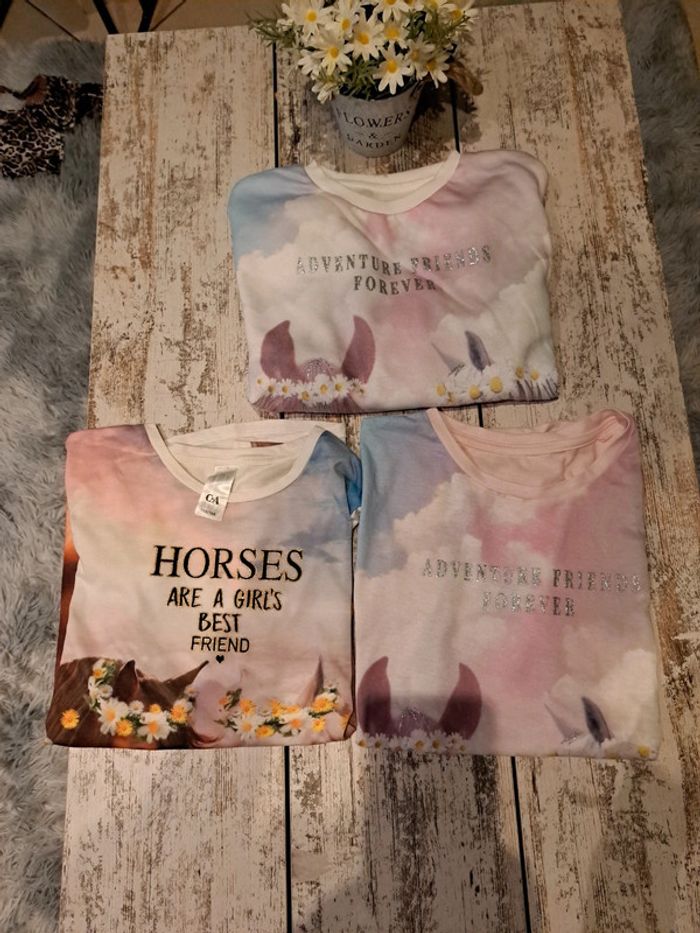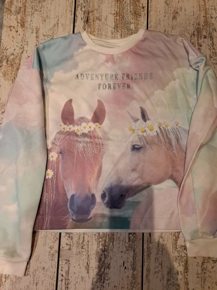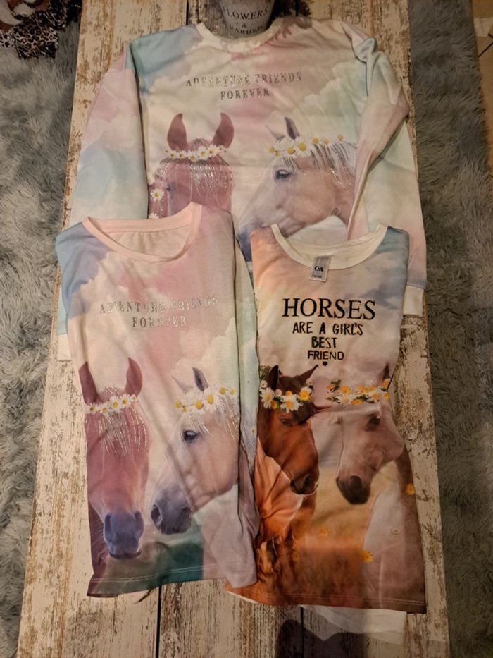 Pull arc en ciel chevaux avec 2 t shirt assortis