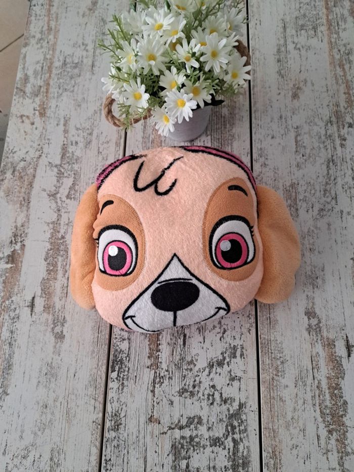 La tête du coussin peut se porter sur la tête et on peut enrouler la couverture autour de ses épaules état neuf jamais porté Peut servir de peignoir Paw patrol
