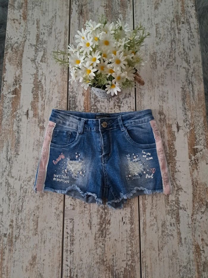 Short à faux trousse avec des bandes de strass survles côtés et des deco perles et strass