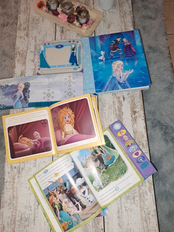 1 livre musical Un pique-nique parfait bon état 5€ petit livre la reine des neiges 1€ petit livre la reine des neiges bon état une fête 2€ Un livre avec crayon magnétique bon état 5€ un livre puzzle éteint 6€ ou 15€ le lot