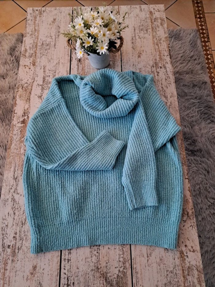 Pull bleu pailletée col roule - photo numéro 5