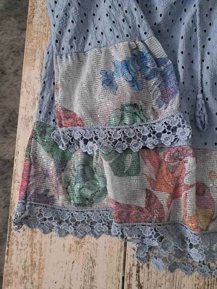 Haut bleu dentelle broderie et sequins - photo numéro 2
