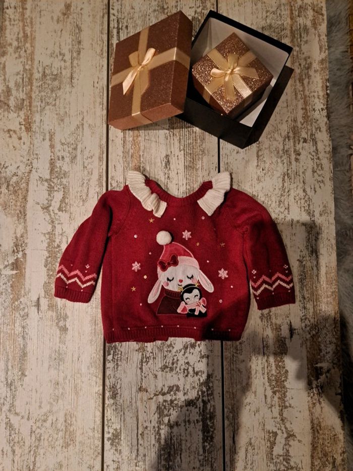 Pull  de noel petite fille et pingouin à boutons sergent major - photo numéro 1