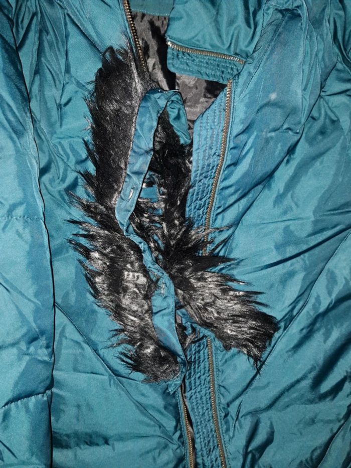 Manteau très non état La fourrure est en bon état et s accroché à la captais il manque une petit bouton Elle est amovible Couleur bleu canard