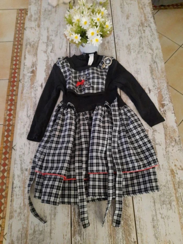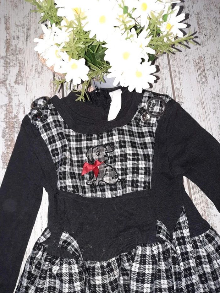 Robe vintage a carreau noir et blanc avec un Dalmatien - photo numéro 1