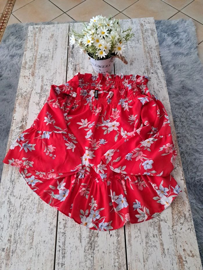 Haut à 🌸 fleurs dentelle large et manches évasées - photo numéro 1