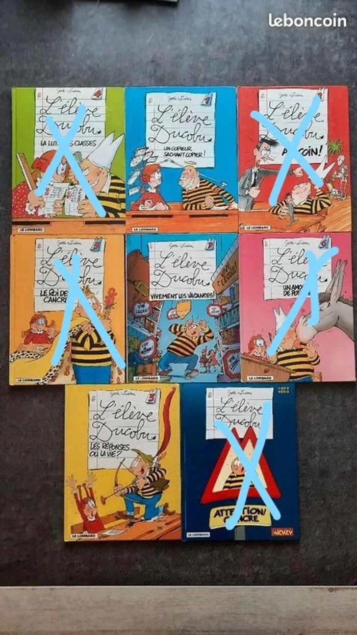 BD l élève ducobu Un copieur sachant copier 3 Euros bon etat Vivement les vacances 3 Euros bon etat Etat satisfaisant 1 Euros Les réponses ou la vie ou 6€ le lot