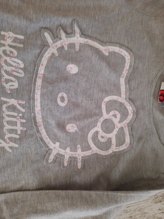 Joli t shirt hello kitty Gris avec logo fleuri