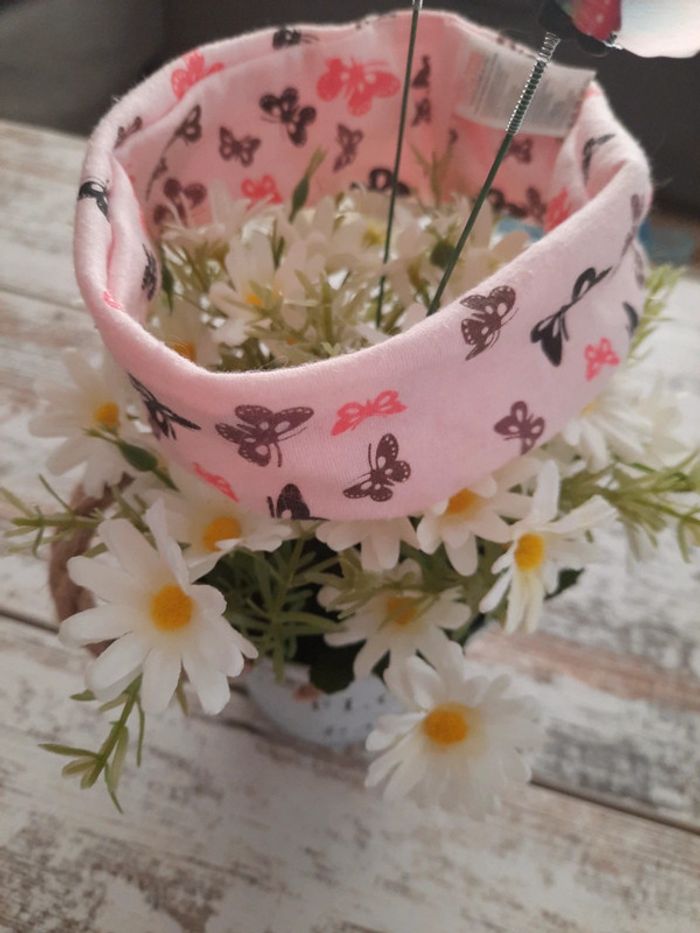 Bandeau pour cheveux rose avec des papillons pour fille, le pot de fleur et les deux papillon rose et jaune ne sont pas à vendre Très bon état G20*