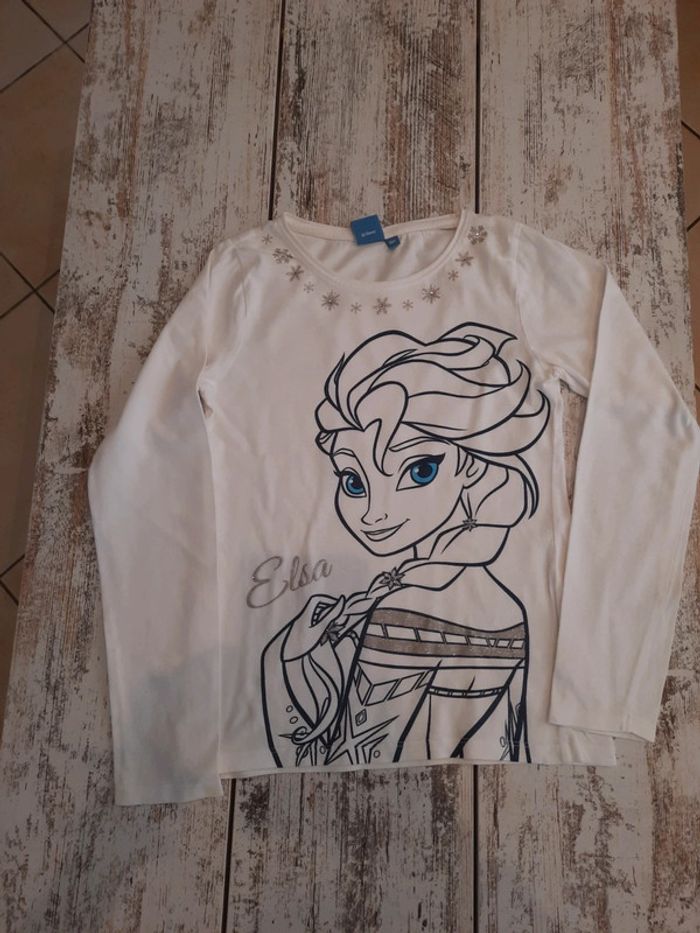 T-shirt manche longue la reine des neiges avec des strass et des paillettes Très bon état 10 ans G20*