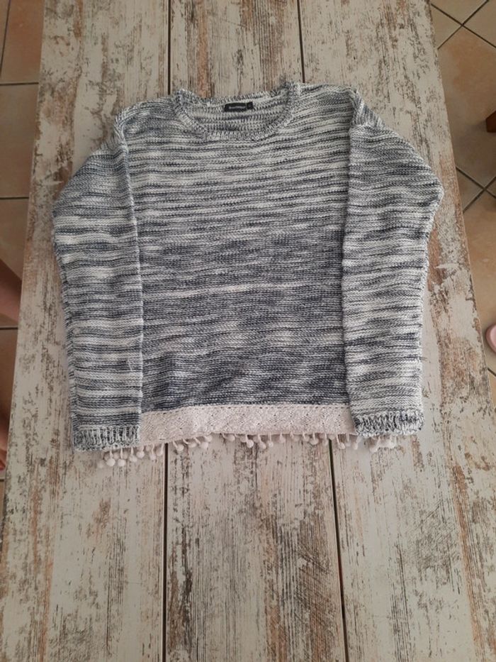 Pull gris avec des pompon - photo numéro 3