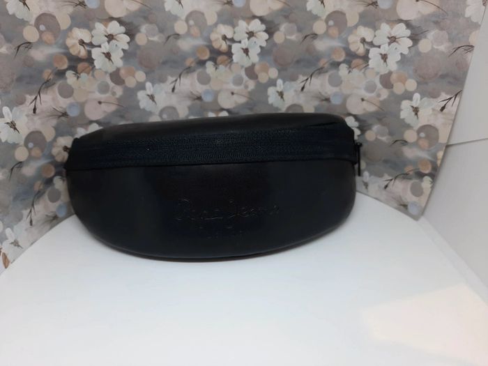 Boite à lunettes pépé jeans avec chifon de nettoyage assorti et la marque pépé jeans en bon état Avec un Petit défaut au niveau de la fin de la fermeture visible sur la photo Bon état