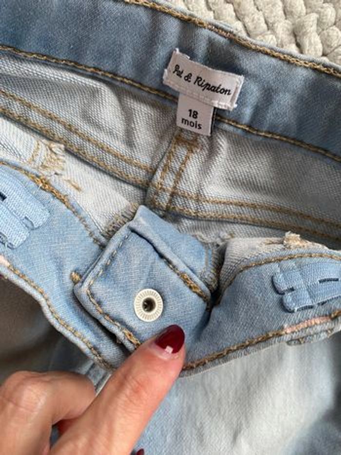 Bleu jean Pat et Ripaton en très bon état Legging rose clair fleuri Orchestra - légèrement abîmé aux genoux -> cf photos