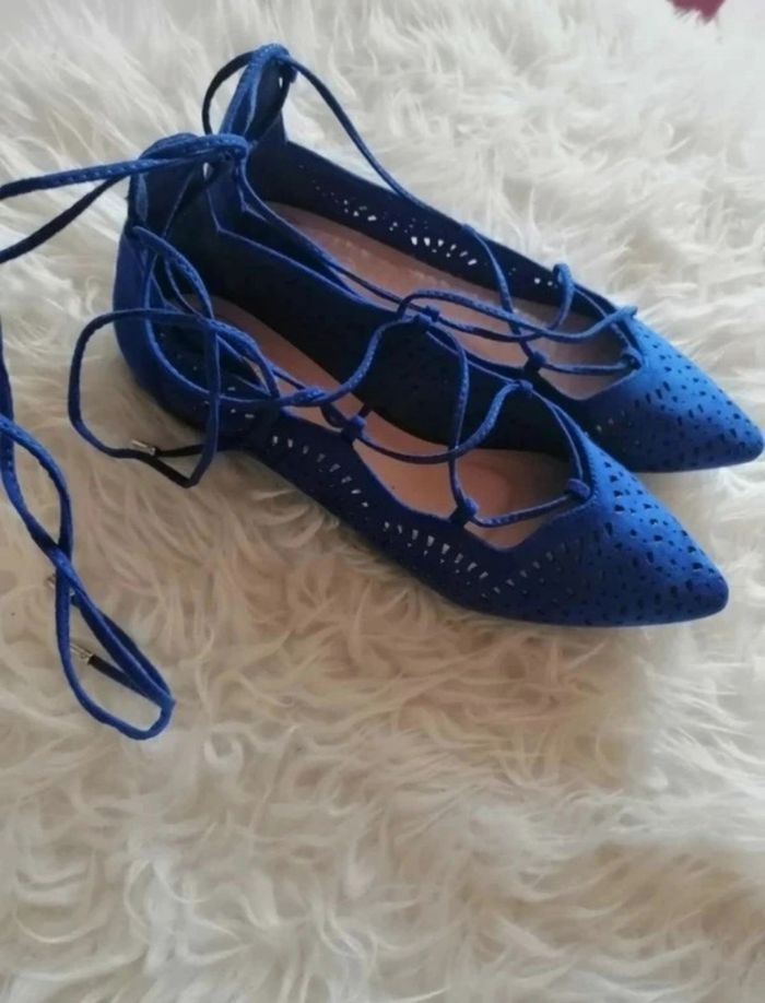 Ballerines bleu cobalt suédine à découpes laser T40 Missguided TBE 🔵