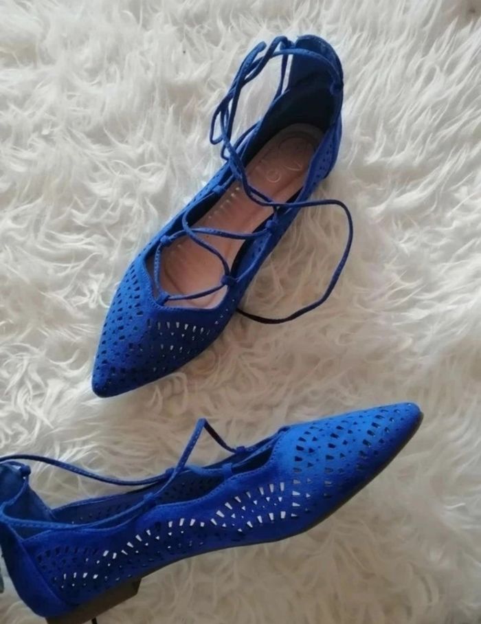 Ballerines bleu cobalt suédine à découpes laser T40 Missguided  TBE  🔵 - photo numéro 1