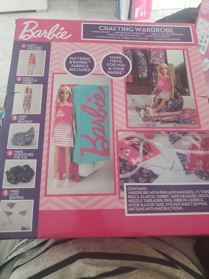 Neuf .. À partir de 8 ans – La garde-robe Barbie Crafting est pour les enfants âgés de 8 ans et plus, et a des articles tranchants Contenu : armoire pliante, 6 feuilles de tissu, 2 feuilles de patrons de couture, 10 épingles, 3 broches en plastique, 3 bobines de fil, 1 élastique, 1 mètre ruban en tissu, un enfile-aiguille plus une bande Velcro nécessaire Première ligne de mode - Les amateurs de mode peuvent apprendre les patrons de couture et comment créer des tenues et accessoires simples en utilisant les tissus et accessoires inclus Compétences réelles : avec 3 bobines de fil et tout ce dont vous avez besoin pour coudre vos propres tenues, chouchous et même un pouf poire, l'armoire Barbie Crafting est parfaite pour pratiquer la couture Faites ce que vous aimez : pour les amateurs de mode et ceux qui ont un style de design, la garde-robe Barbie Crafting est le cadeau idéal Soyez inspiré : avec différents tissus, motifs de couture et styles, les enfants peuvent expérimenter, s'amuser et exprimer leur créativité à travers la mode et le design