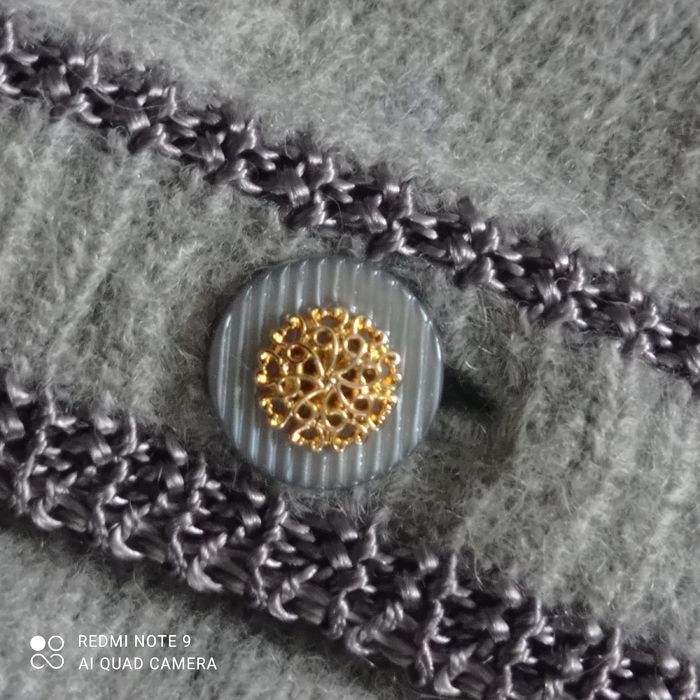 Style gilet autrichien. Jolis boutons dorés. Bouton du bas manquant mais il y a un bouton en rab. Donc juste à coudre. Duveteux. Je ne connais pas la composition car l étiquette est écrite en langue asiatique. Taille petit. Étiqueté t38. Voici les mesures prises à plat : épaules : 41cm, aisselles : 49cm, longueur : 55cm.