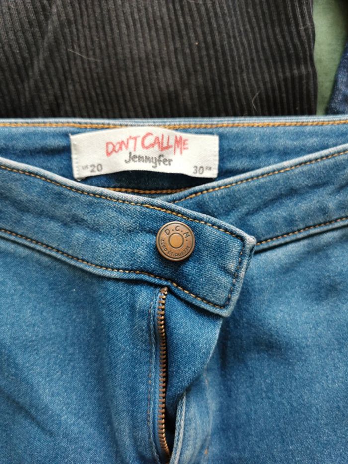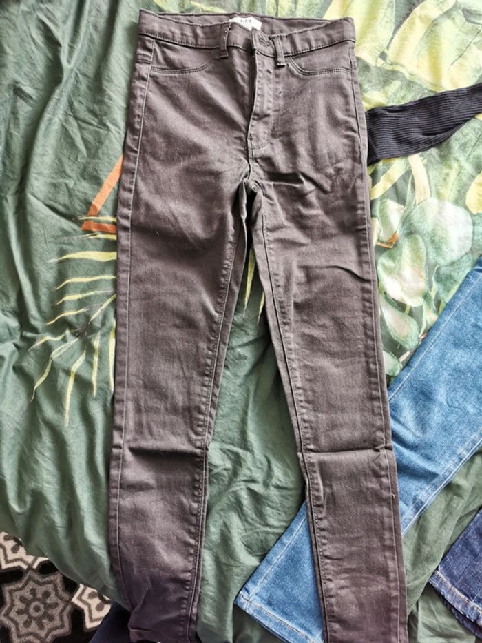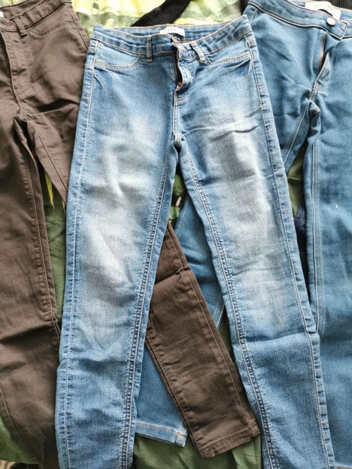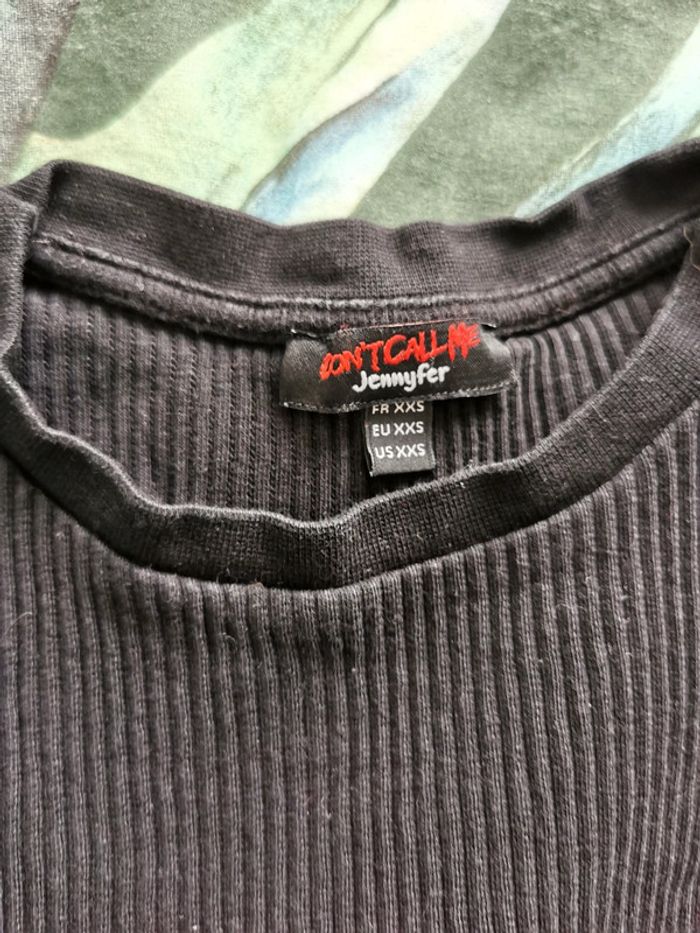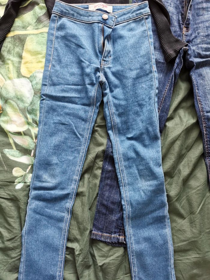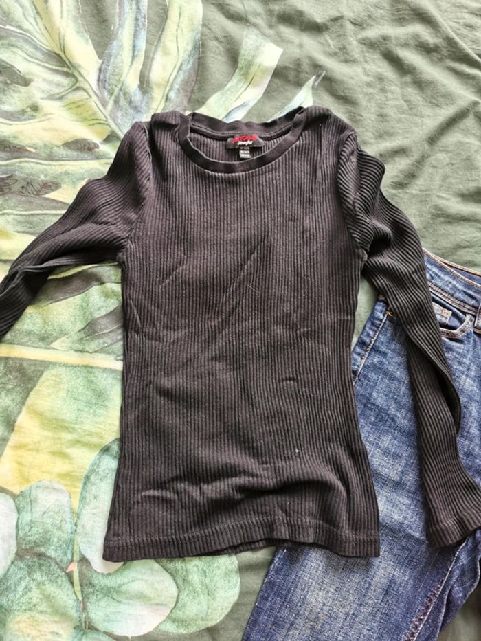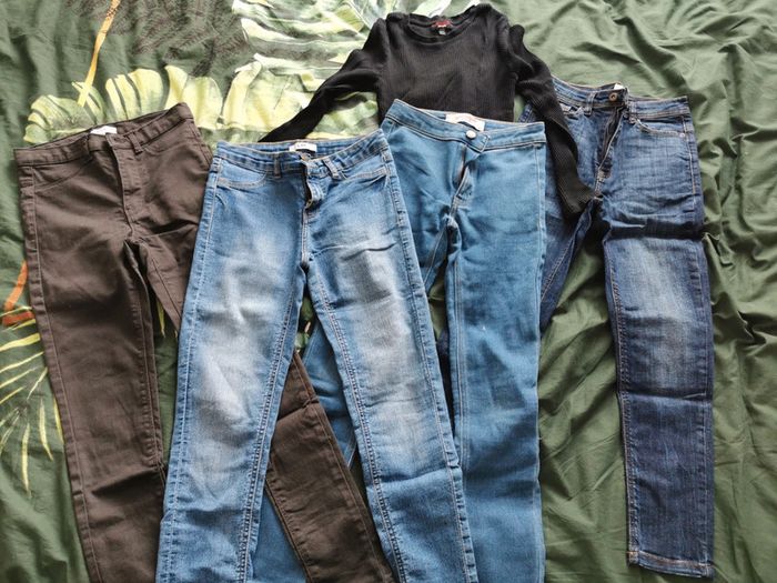 Lot de 5 vêtements taille XXS 1 jean bleu "La Halle" neuf 1 jean noir "La Halle" neuf 1 jean bleu "Jennyfer" taille 30 1 jean bleu 7/8ème "La Halle" neuf 1 Tee-shirt manches longues noir "Jennyfer"