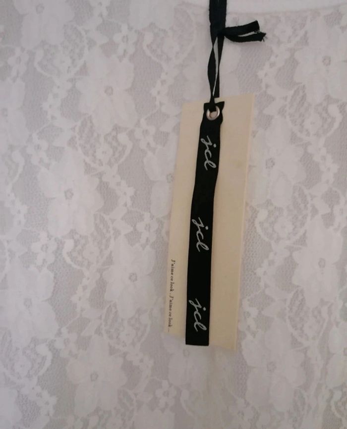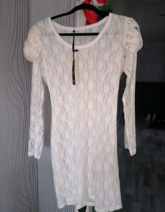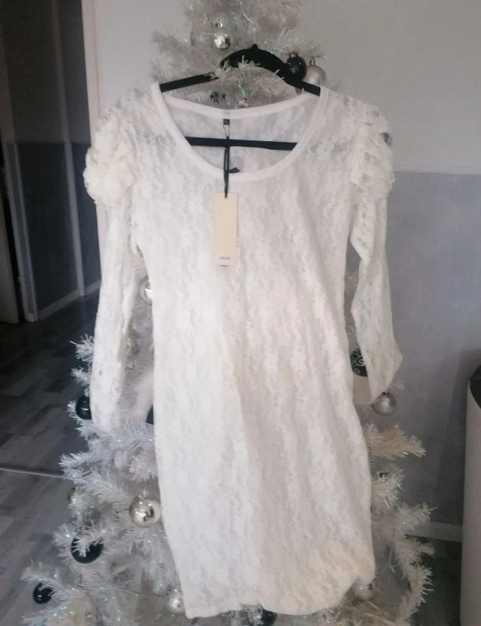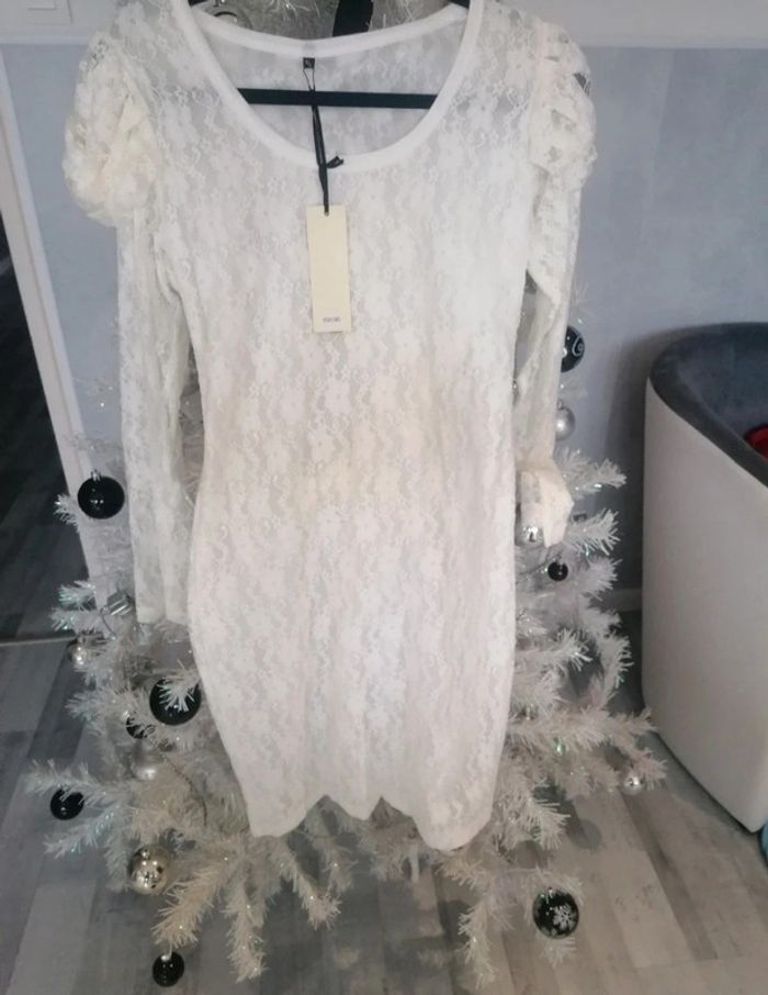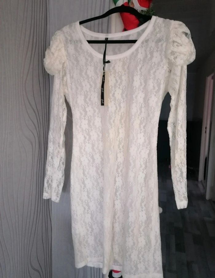 Jolie robe blanche tout en dentelle Transparente au niveau des bras Neuve !!! Encore étiqueté 🏷️ Taille M-L Marque j'aime ce look Idéal fêtes, mariage... 🎊🍹