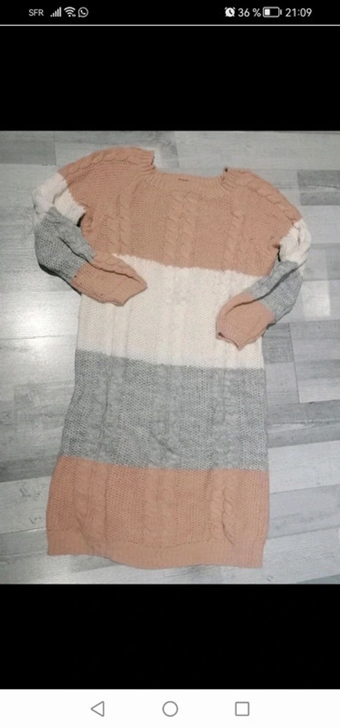 Robe acrylique, mohair, laine Robe hivernale 🥶 Effet tressé sur les manches Made in Italy Vieux rose poudré, blanc, gris Super état 👍